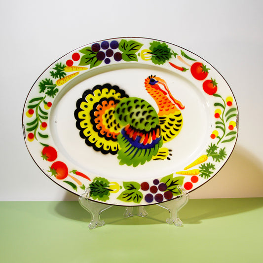 Vintage Enamel Turkey Tray, Thanksgiving Serving Tray, 1960s