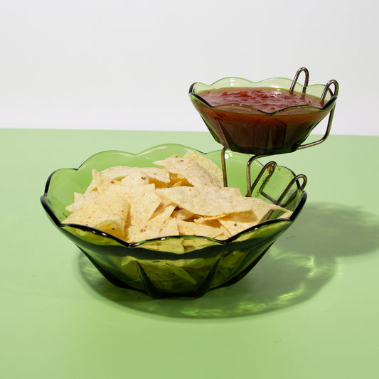 Vintage Green GlassChip & Dip Bowl Set, Mid-century 1970s