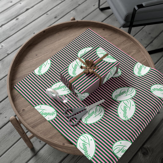 Fragile Sticker on Green & Pink Stripes Gift Wrap Papers, Matte or Satin, Christmas Holiday Wrapping Paper