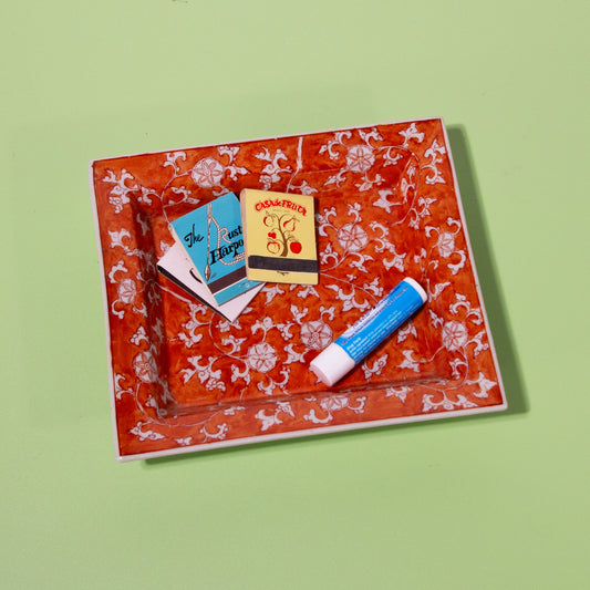 Vintage Japanese Porcelain Red Patterned Tray, 1970s