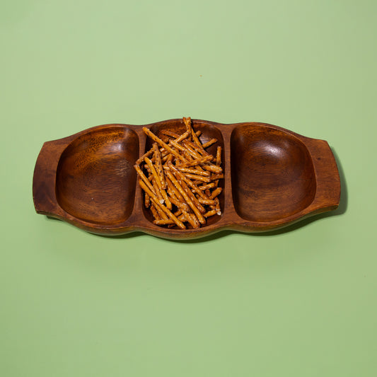 Vintage Monkeypod Three Section Appetizer Tray, Mid-century 1960s