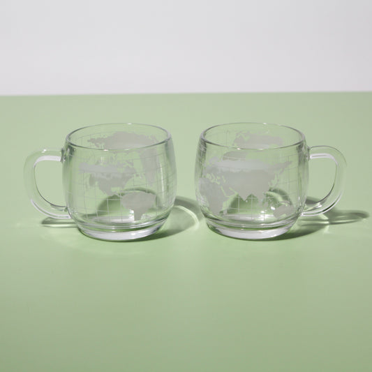 Vintage 1970s Clear Globe Mugs, Set of 2
