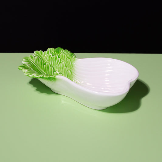Vintage Ceramic Green Leaves Onion Snack or Appetizer Bowl, 1990s