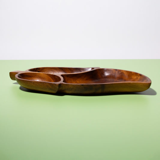 Three Section Leaf-Shaped Monkeypod Snack Tray, 1960s