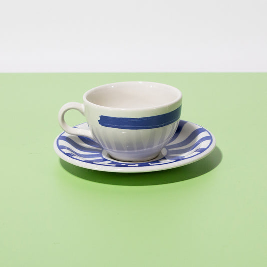 Vintage White & Blue Striped Mug and Saucers, Made in England, 1990s