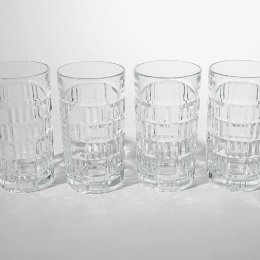 Vintage Clear Glass Geometric Pattern Tumblers, 1960s Mid-century