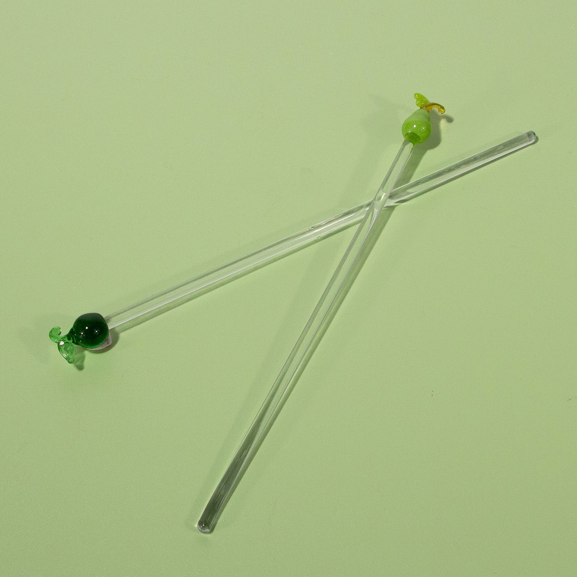 Vintage Handblown Apple & Pear Glass Swizzle Stick Set, Set of 2, 1970s