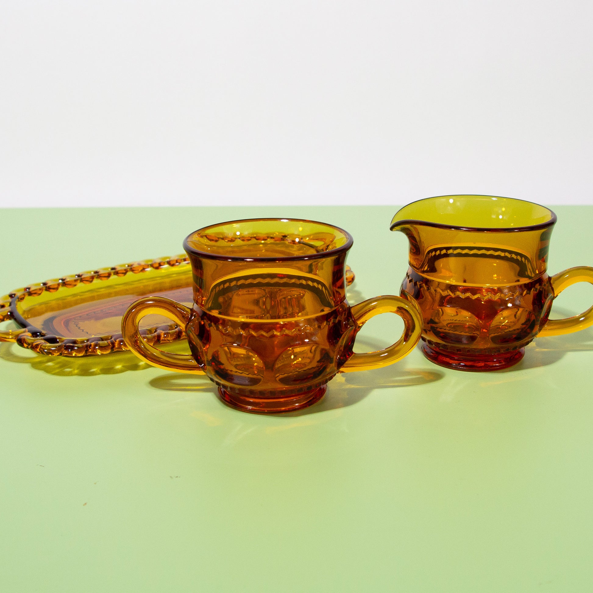 Vintage Amber Glass Sugar & Creamer Set with Saucer, 1980s