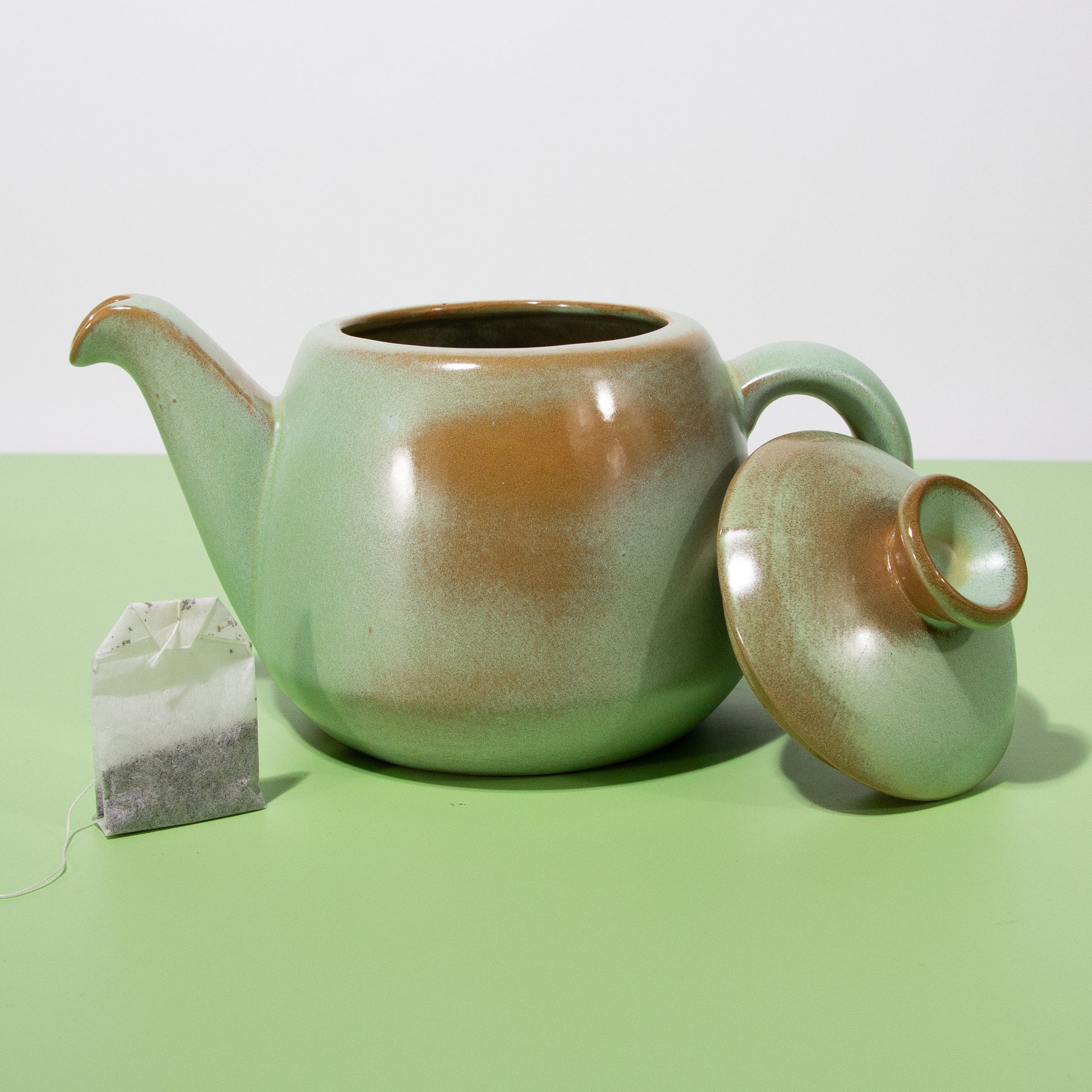 This is classic Frankoma! We absolutely love this vintage teapot and think you will too. Made of red Oklahoma clay, this teapot is elegantly designed and sturdy enough for years of use.
