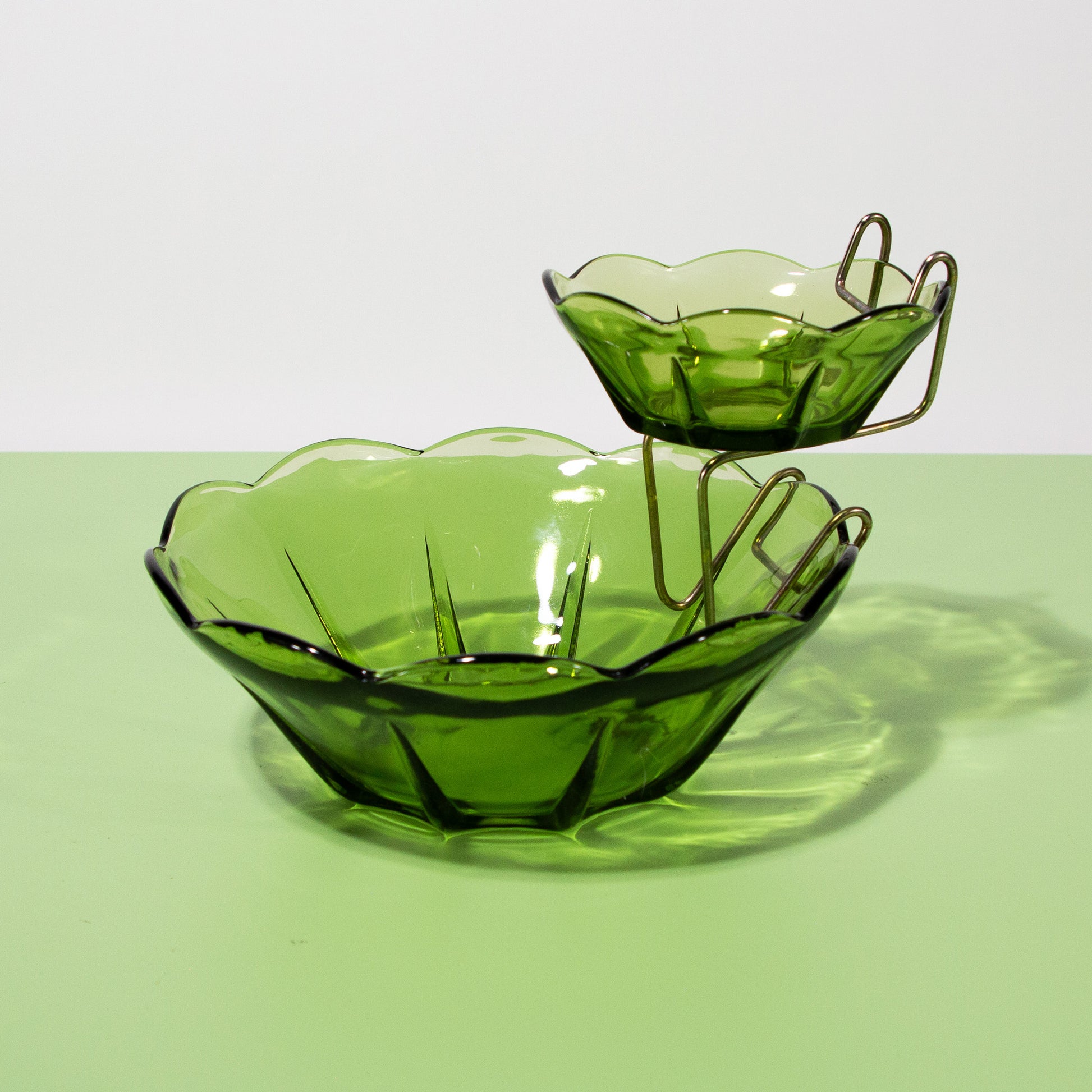 Vintage Green GlassChip & Dip Bowl Set, Mid-century 1970s