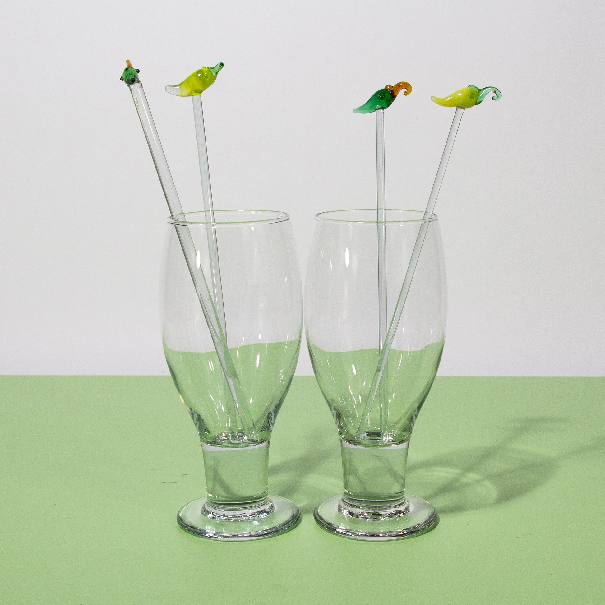 Vintage Handblown Green & Yellow Pepper Glass Swizzle Sticks, Set of 4, 1970s