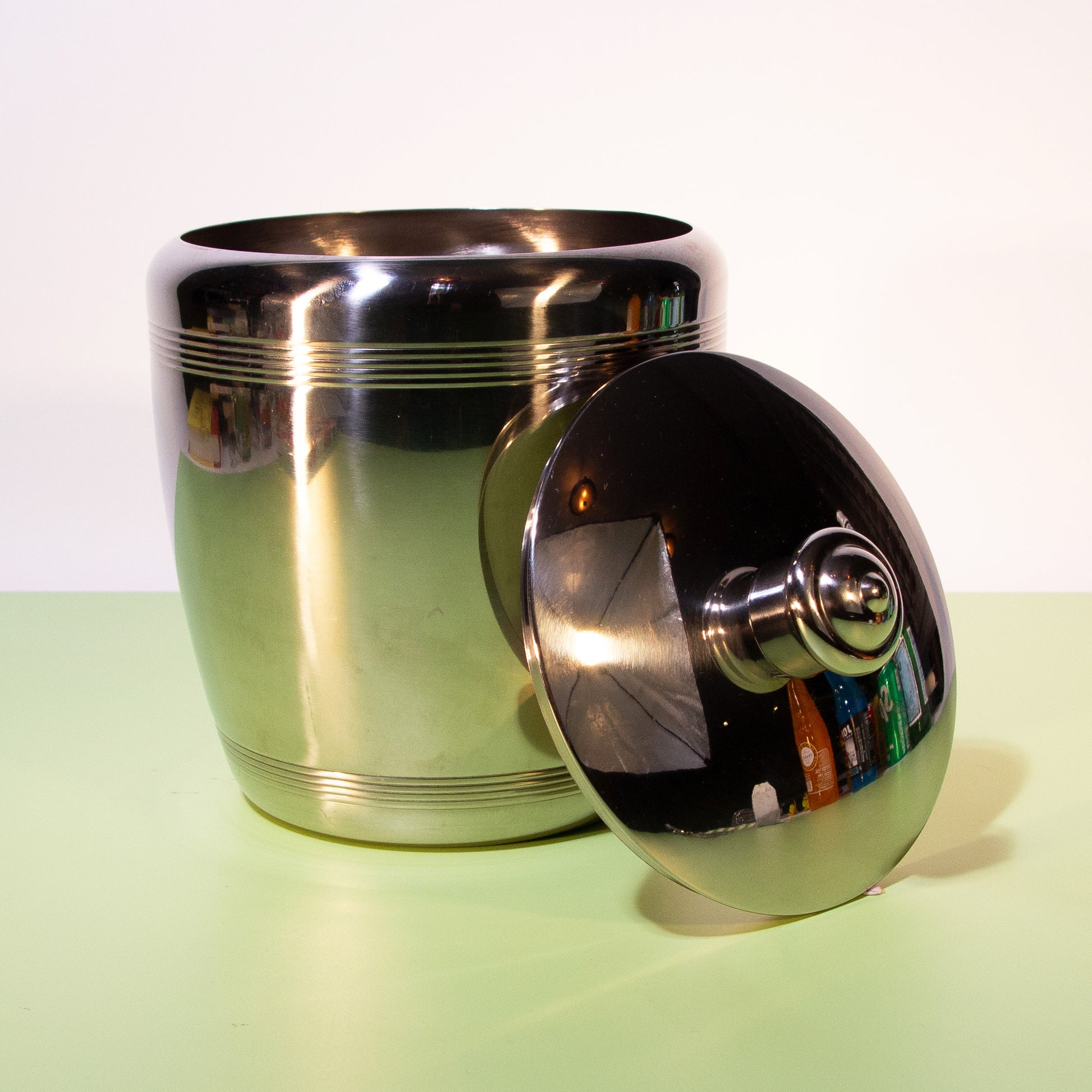 This is the ice bucket that you didn't know you needed. Made of stainless steel, this vintage bucket will keep ice cold and at the ready for your next gathering. Holds one gallon.